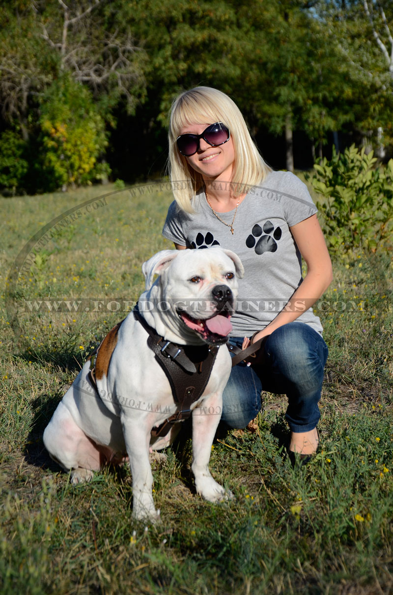 Get Pro Training Leather Dog Harness for your American Bulldog!