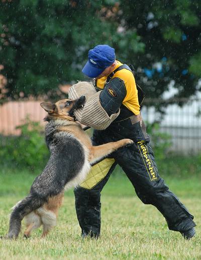 I couldn't believe it:) I ordered my sleeve on the 19th of July and it was here within the same week. The dog even opened the box with me, as if she knew what it was. All I have to say is thank you. Thank you for sending it within your suggested time frame, thanks for the tracking number (makes you feel a bit more at ease knowing it's on it's way), thank you for a really really well made sleeve, it's ace. To be honest, It's something new for me and I only purchased the sleeve for fun. It's the most amount of fun, and it's really exiting to see my dog react and respond when I wear it. She will bite on command, hold, lie down and drop on command. Not only that, my arm hurts no more, I have no scratches all down it and the dog now knows when it's play time. I'm still trying to find the right combo of bite pads in the sleeve but I getting there. Again, thank you so very much. Really. I searched for weeks on these sleeves and believe that I made the best choice in the end. Ooh, and thanks for the key ring!! Even that's better than my old ones!! Fordogtrainers.com ? Book marked Thank you, Graham Walker A normal bloke, with a bulldog, made happy by you Take a look at protection sleeve in 3D