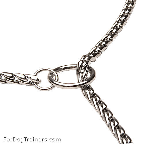 If you need a training collar for your dog, this new Exclusive Design Show Collar will be a perfect choice. It will help you in obedience training, moreover it will make your dog look even much prettier. It has a form of a long chain with two rings on both ends, forming a loop round dog's neck. It should be worn high on the dog's neck, right under dog's chin and behind his ears.