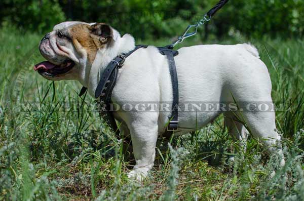 Walking Adjustable Leather English Bulldog Harness