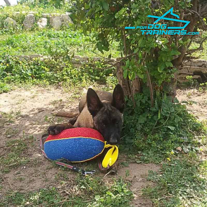 If you are tired of bite tugs which break down very quickly, get this French Linen Bite Tug recommended by professionals. The filling of the tug is made of non-toxic, safe for dog's health materials. The tug has а handle that allows you to change the direction of tension quickly. You may hold the tug firmly confident that dog cannot traumatize your hands.