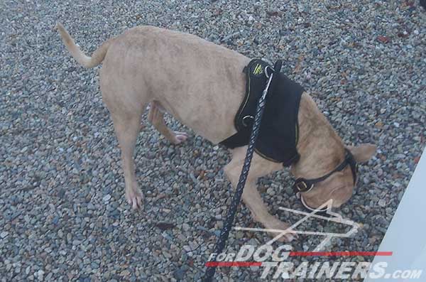 Synthetic pulling dog harness for watching and guarding work used also as dog tracking harness. ADJUSTABLE.