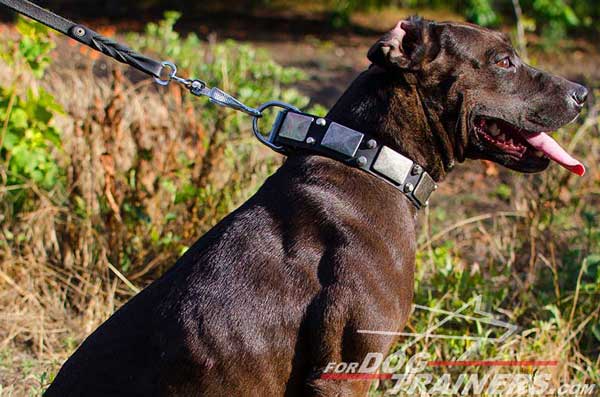 Rustproof Massive Plates and Studs on Stylish Pitbull Collar
