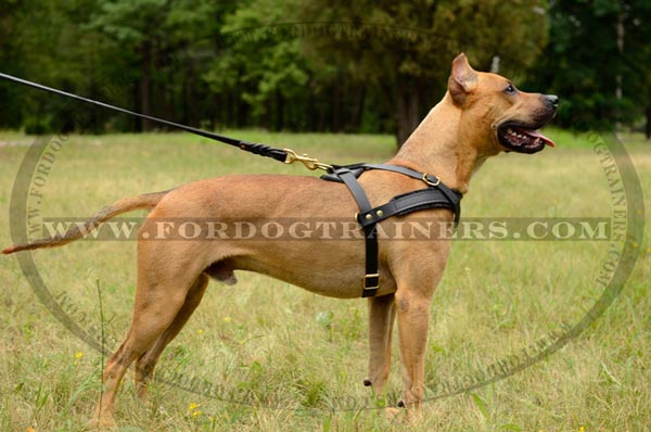 Brass rivets and D-rings for leather Pitbull harness for pulling