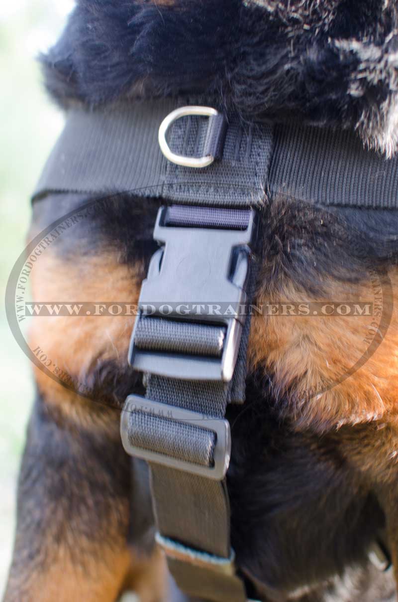 Ultimate dog harness with under belly strap and with opened side quick release buckle